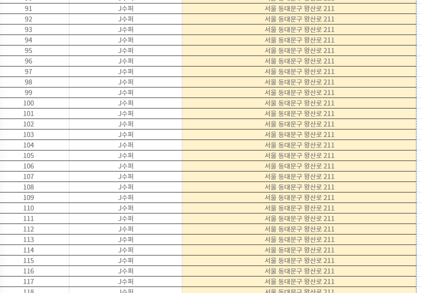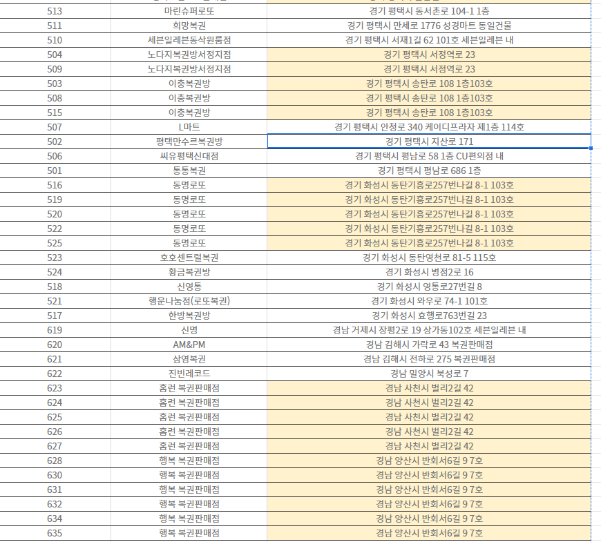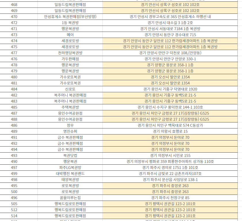 엑셀로 모든 2등 당첨판매점을 정리했습니다.