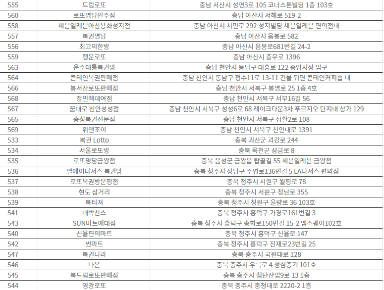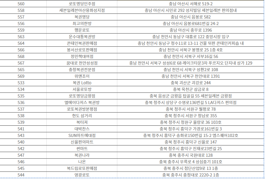앞에 번호는 홈페이지상 2등 당첨판매점 순서번호입니다.