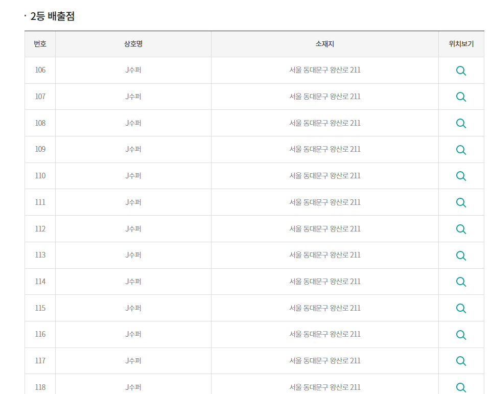 그래서 2등 당첨판매점 정보를 확인해봅니다.